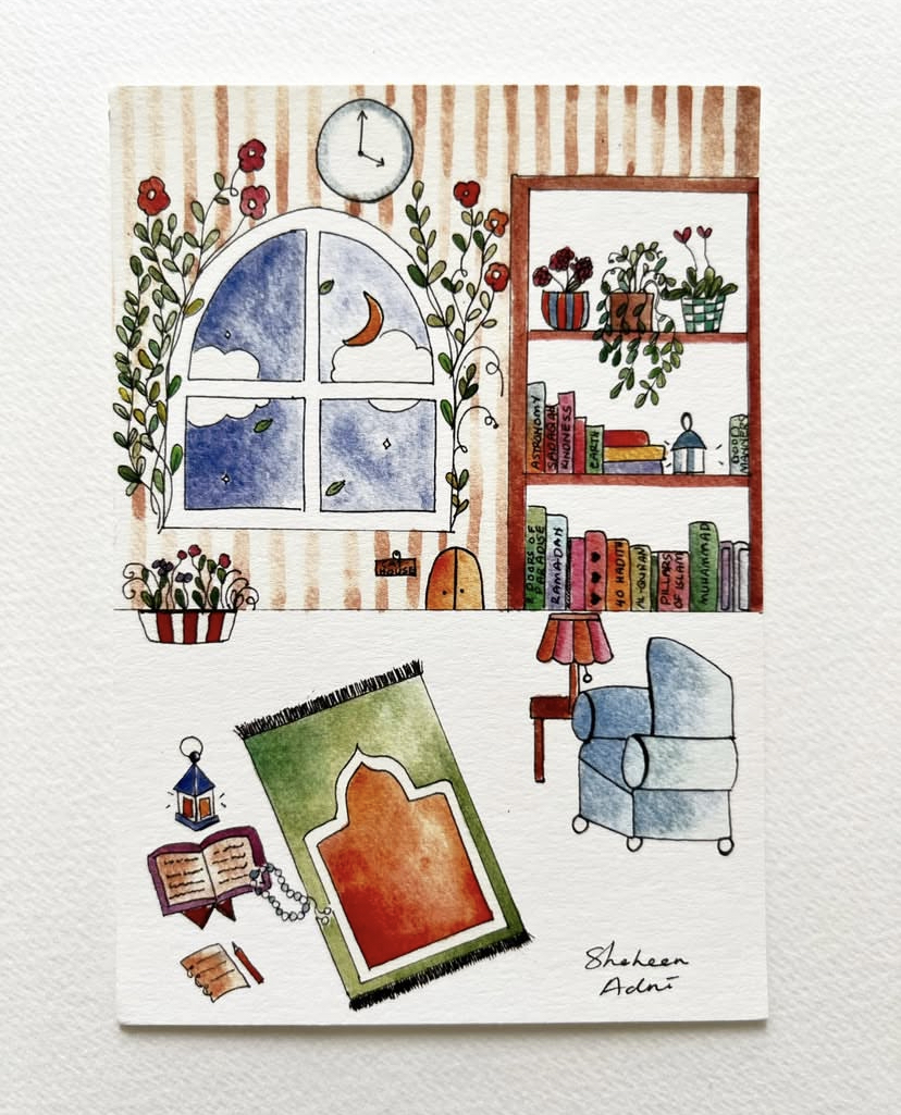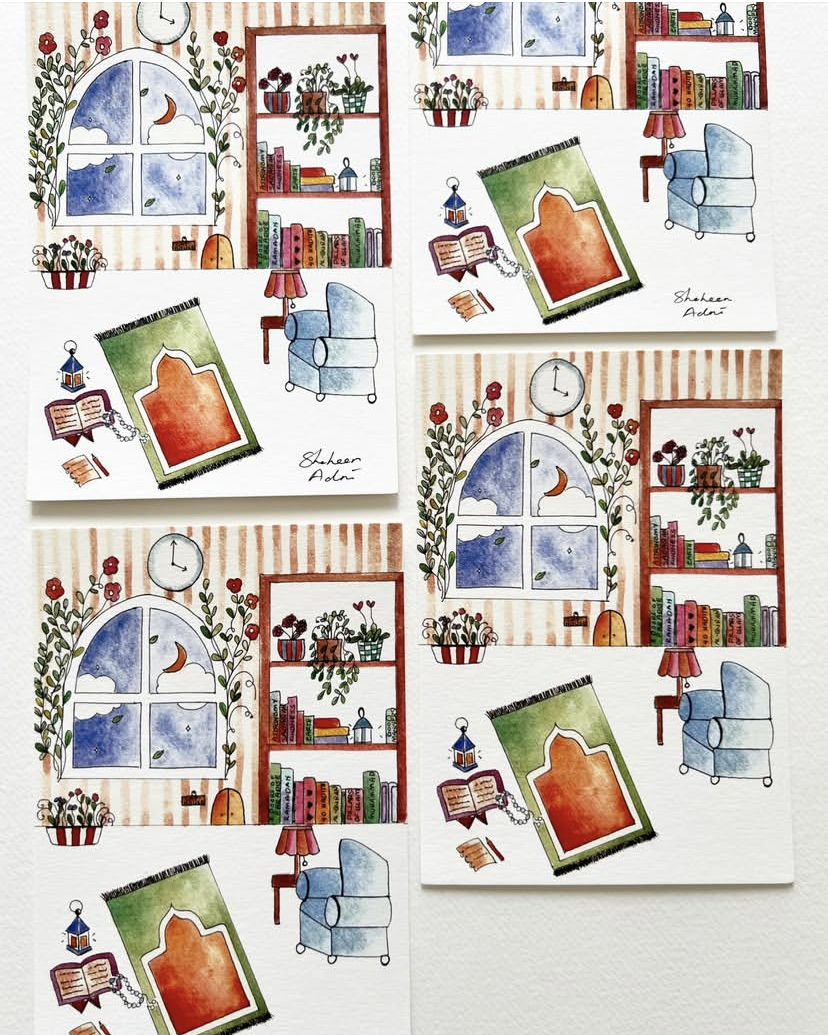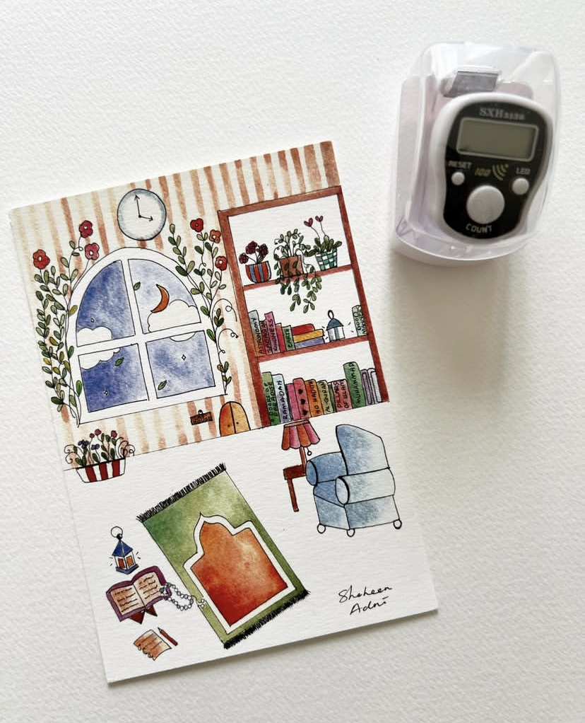- A 250gsm A6 card (Tahajudku Bertemankan Bintang dan Bulan) drawn by my daughter